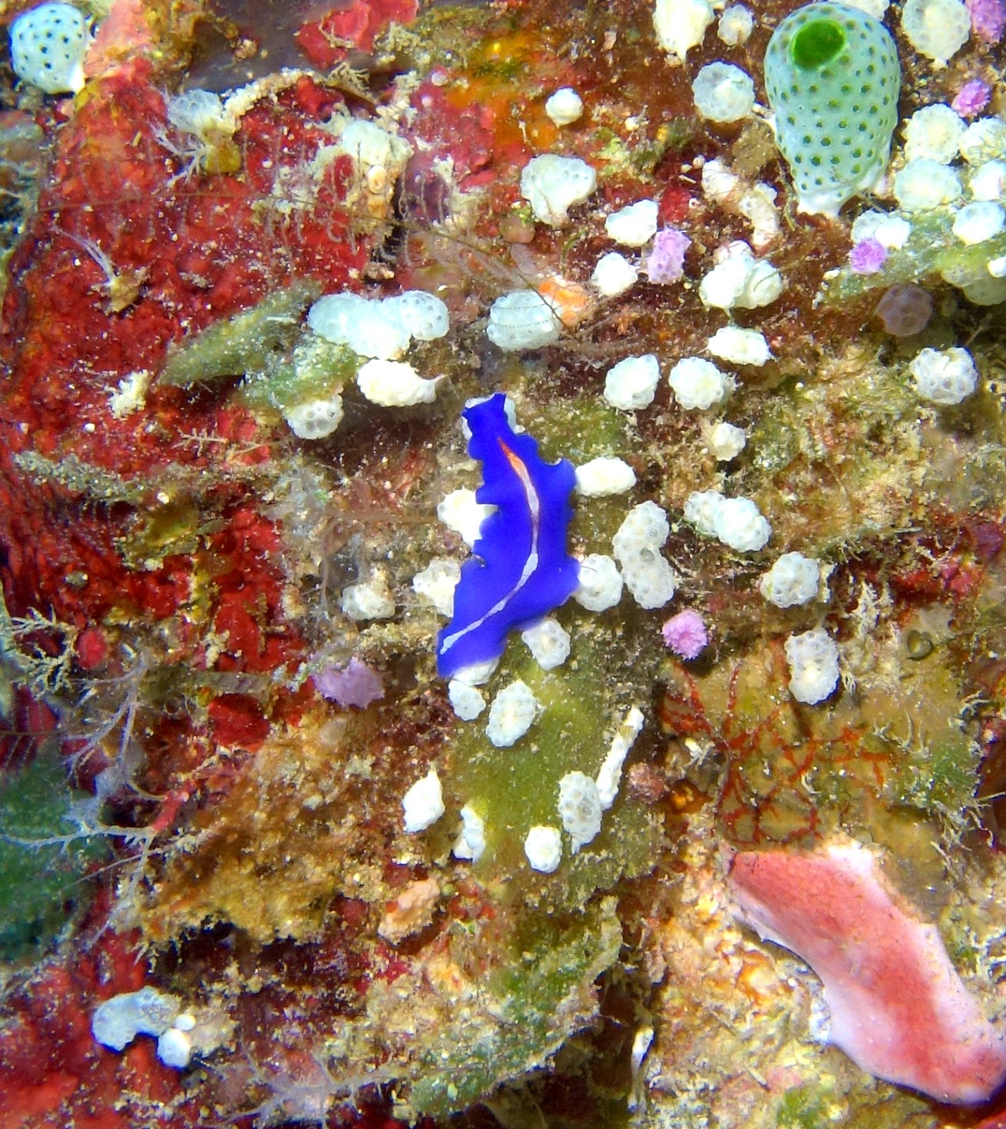 On the way to the third we came across a huge pod, at least 50 strong, of spinner dolphins. Driving past them we picked up a few that were playing in the bow wave of the boat. At one stage about a dozen were right in front of us. The third dive was along another wall with a really gentle current to push us along. A few more Nudi and loads of healthy coral, plus some big schools of fish. Yuki also managed to find a cute little white Nudi, far too small for me to attempt taking a picture, that was maybe 5mm total in length.